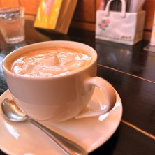 お昼の12:12 間に合いました‼️ モーニングが12:30までやっている喫茶店🌟。:* コーヒー代(450円)のみ。2人で900円。 昼食代わりに頂きました😊 こちらのお店は 手作りパン ぱ ∩(´∀`)ぱーーーんっ☆ パンは2つの内 1つが選べました ポテトパン・クロワッサン・ウインナーパン・梅クリームパンの4つの中から 母はクロワッサン🥐、私は うめぇ(梅)〜クリームパン 今日は母親の用事で、保健センター、買い物。喫茶店2軒〜!!!!