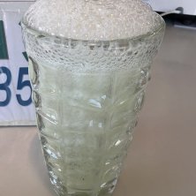 フルーツ店が営む生ジュース。紙コップのテイクアウトも可能ですが、グラスの方が佇まい良く量も多いです。 紅ほっぺ と章姫 250円、クラウンメロン 250円、ピーチ 300円。