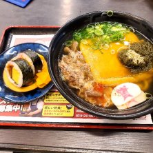 きつねうどんと肉トッピング、味巻寿司