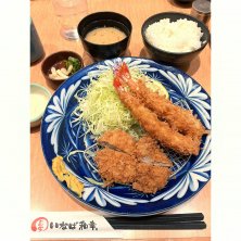 いなば和幸で ヒレカツ&海老フライ定食🍽️ いつものように ライス🍚キャベツ🥬シジミ汁1回おかわり😋