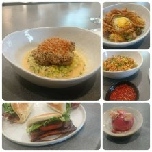 帰国前夜、予約して再度同じレストランへ! ディナーは、お酒が中心で賑やかな雰囲気♪ 前日、沢山食べれないけど色々食べたいと、わがままリクエストしていたので、少量サイズがでて来ました。 コロッケは、人気なだけあって絶品! トリュフとチーズのハーモニーが素晴らしい✌️