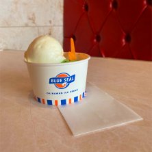 マクロビオティックランチした後にこんなん食うてんのかコラ👊と怒られそうですが…沖縄といえばブルーシールアイス。浦添の本店には実に20年以上来ていなかったので寄っちゃいました。 ブルーシールアイスは今では本州でもわりとお目にかかりますが、独立店舗にはパフェメニューがあります。 紅芋チップ、ちんすこう、オキナワン素材のアイスクリームなどが沢山詰まった沖縄パフェ。グラスが曇ってよく見えなかったですが、色んなもんが入っています。 さあ後は帰るだけかぁー😢