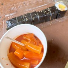 今日は、鶴橋でなくコリアタウンの方へ🇰🇷 娘がシールを物色しておる間、かーちゃんはチーズキンパとトッポッキ🌶️