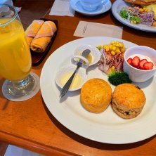 ずっと気になっていたwaon🍞 ホットサンド🧔は、旦那 パンとチーズ🧀の相性💙が最高✌️でした 私はスコーンモーニング🍳にした プレーンとレーズンかチーズが選べるんだけど プレーンがなくなったということで レーズン🍇とチーズ🧀が食べれた 美味しかった、スコーン大好きな私にとって 最高な朝☀️でした ジャムも手作りで、美味しかったな😊