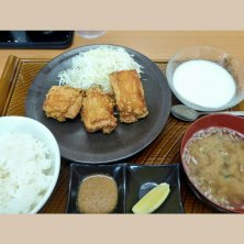 から良しで、3個定食。ご飯大盛りなのに少ないなあ~と思いつつ、写真を撮って一口食べたら、『間違えてました〜』と、交換してくれた。一口食べたライスは廃棄していたが、何かもったいないなあ。ハーフライス追加で良いのに。
