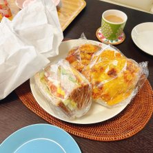 朝ご飯🥐 旦那さんが、自転車漕いだ帰りに買って来てくれたパンで朝ご飯!!