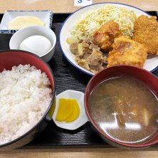 A定食ヒレカツ、唐揚げ、豚🐷焼き肉、ゆで卵サービス、