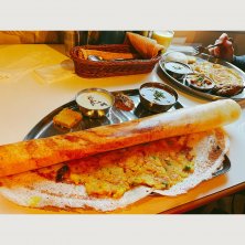 ドーサ。ナンの代わりで、チーズを入れてパリパリに焼いた感じ。少し時間が経つとしっとりしてきて、また美味しかった。カレー一種類、ココナッツベースの何か(笑)、もう一種類カレー以外のつけるのがあった。これもあと一枚無料で追加出来ます。 珍しいし、一度食べてもいいと思う。美味しかった。★★★★☆