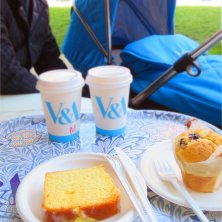 天気が良かったのでレモンケーキとブルーベリーマフィンをお供に中庭でお茶。