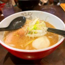 ラーメン海鳴亭で魚介豚骨ラーメンを食べました。 博多の豚骨ラーメンに魚介を入れるとどうなるのかな?と思い好奇心でお店のお勧めを注文しましたが、足し算なのに引き算になる美味しさにびっくりしました。 豚骨のこってりが魚介で薄まらないのにお出汁でさっぱりしてくれるのは驚きの一言です。 たまに食べたくなる中毒性がありますが、ガツンとパンチは控えめで私の頭では表現に難しいラーメンでした。