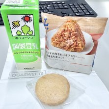 朝食…ナチュラルローソンのおにぎり😋 オガスイーツのサブレ キナコ🍪😋