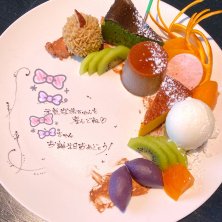 ㊗️デザートプレート🍰🍨頼んでくれてた❤️ 可愛い😍❤️✨ モンブランも抹茶バスクチーズケーキもレアチーズも美味しかったぁぁ💕✨ フルーツは1歳の男の子が綺麗にペロリ😋よく食べる子なんだよね〜可愛い💕