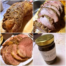 ✄------- 1/24土曜日 家族新年会② -------✄ 私が持ち寄ったのはカナリヤのローストポーク この日のために1本焼いてもらいました😆 出来たてのローストポークを背負い、電車で実家へ 母が計量したら2.3㌔ありましたよ😳 肩が凝りました😂 写真を撮り忘れてしまったけれど 林檎と生姜のソースもめちゃめちゃ美味しかったし 妹が差し入れた「純胡椒」との相性も抜群👌 みんなに喜んでもらえて良かった🥰