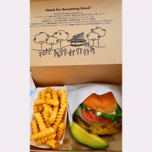 割引のクーポンがあったのでシェイクシャックの ハンバーガー🍔アボカド🥑追加と フレンチフライ🍟をデリバリー🚀 配達がちょっと時間かかって少し冷めてたけど 美味しかった😋
