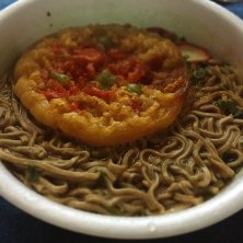 マルちゃん天ぷらそば 朝食 鰹だしが効いてるー 飲み干してしまいます。