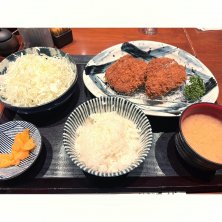 ロースカツ&メンチカツ定食🍽️ ここのメンチカツは肉汁ジュワーっとして なかなか旨い😋