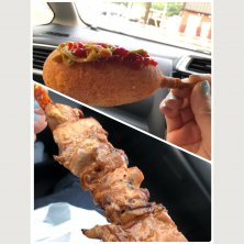 備中松山城で 昼前から夕方までじっくり過ごしたので 昼ごはん食べ損ねて 麓でコンビニに寄りました😜 アメリカンドッグも やきとりも美味しかったっす🏪 でもまあ なんか持ってって お城のとこで食べるのもよいかもしれませーん😁