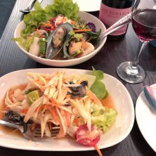 今日も気温は37度 こんな日はスパイシー🌶なタイ料理🇹🇭 こちらはかなり本場に近いタイレストラン 辛さを聞かれたので「ミディアム」にしましたが 激辛🌶🌶🌶 良い汗💦かいたかな😋 ✨ヤム ウンセン ✨蟹の塩漬け入り ソムタムタイ