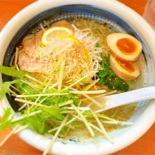 初めての訪問 何がオススメですかと聞くと 初めてでしたら、 このランチセットがいいですよ、、、と と言うわけでこの塩ラーメンにして、半ライスと餃子3個が 付いてきました。 中々美味しかったです。