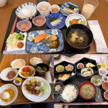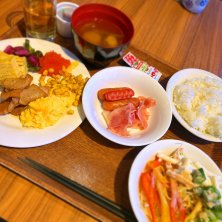 朝ご飯バイキングは1日の元気の源だけど、団体さん(学生)で大渋滞だよ。 「明日は宴会場で対応します」 とスタッフさんの言だけど、そもそもそうして欲しい。 ここはビジネスホテルだよ。 これから朝のアポを控えたビジネスマンが、学生の渋滞に巻き込まれるのは感心出来ないな。