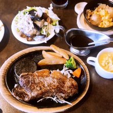 【ハンバーグ】 サラダバーは中止してましたが、 カレー、ライス、ソフトクリームは食べ放題でした。案の定食べ過ぎました…
