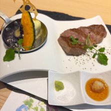 月岡美人会席♪ メイン料理は2品 黒毛和牛のすき焼きとのどぐろ藻塩焼き その他新潟地元食材を使った美味しい料理でした。