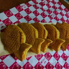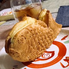 お土産にたい焼き🐟 限定白玉きな粉餡、クリーム、普通のあんこ♥ 最近オーブンで焼くとパリッとして美味しいってわかった。レンチンだとだめ🤣