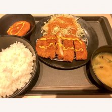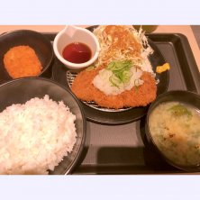恐らく人生で初体験になるのは?…的な マイ・ファースト"松のや"さん "松屋フーズ"系列のとんかつ屋さんに チェックインして "ロースかつ &有頭大海老フライ(1尾)定食" どちらも 揚げたてサクサクでいい感じ "ロースかつ"は"辛子"をつけて "特製ソース"と"中濃ソース"の二刀流で "海老フライ"は酸味も程よい "タルタルソース"で頂いたらいい感じ あと個人的嗜好ですが"とんかつ"の際の "キャベツ"は ドレッシングでなく "ソースで頂く派です