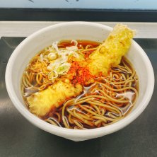 ◆ちくわ天そば 500円(税込) ランチを済ませた直後ですがこの店の前を通り、漂ってくる出汁の香りに引き寄せられて入口まで行くとスタッフのオバさん達から「いらっしゃいませー !!」と大きくて元気な声で迎えられてもう食べるしかなくなりました。 ちくわは縦に半分に切ってありますが長さは1本のままで、大きさが嬉しいです。 麺はしっかりした角麺でいい食感です。 この日も寒かったので温かいつゆが染み渡ります。 美味~い♫ ランチ直後でしたが美味しくいただきました。 駅そばってやっぱり好きだなぁ♡