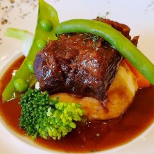 #リッチにフランス料理 #ランチメニュー #メニューb 3,100円 #デザート盛り合わせ +300円 #静岡県産 #牛ほほ肉の赤ワイン煮込み +600円 合計4,000円 #前菜 #ノルウェーサーモンの燻製 野菜と味が絶妙 #和牛赤ワイン煮込み #とろけるようなやわらかさ #三方原馬鈴薯 #カリフラワー #ポタージュ #今まで一番美味しい