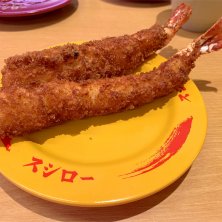 スシローのエビ天にぎり🍤 大きなエビ天と思ったらやっぱり¥150でした💦 でもぷりぷりで美味しかった。