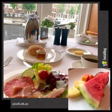 アムステルダム5日目は… 目覚ましかけずにゆっくり起きてサンデーブランチ😊 もうお仕事終わったのでwithシャンパン🍾 大満足〜〜💓 食休みしてからお散歩。 軽量所、広場の前の市場、南教会⛪️、レンブラントの家。 結構歩きました💕