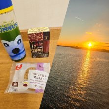 【お仕事前に】 マイボトルで ・Chabacco NAGASAKI MATCHA ・揚げごま団子(黒ごまあん) まだらん、通勤途中に新整備場駅で降り、久しぶり にファミマのイートインで、今朝のトレーニングを 振り返りつつ、Chabaccoと揚げごま団子に癒され、 一休み(*´ω`*) モノレールで通勤途中に綺麗な朝焼けが見れたので 皆さんに共有しますヽ(´▽`)/ 2泊3日のお仕事長いけど、もう少し癒されたら 最寄ってない駅前のファミマから30分歩いて、 行ってきます👋😊