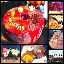 肉フェスシリーズ ハロウィンスィーツ🎃👻 最後の写真ハロウィンスィーツで 黒猫とカボチャの可愛い器にはカボチャプリンとラズベリームース イチゴシフォン シューとチョコマウンテン ロールケーキ パフェはシェフに伝えて作るオーダーパフェ イチゴと抹茶パフェ 又ゆっくり来たいと思うお店でした😊