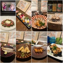 東京ごはん♡ 帰りの機内では寝ずに満喫。 チョイスした前菜のサラダが、ちょうど観てたウィキッドの世界観にぴったりでなんか嬉しかった♡ その後はキムタクの東京タクシーを観ながら食べて飲んで、、成田着♡ 夜はカウンターの居酒屋へ。 お刺身盛り合わせ、生牡蠣(旦那はナマコ酢)、椎茸炭火焼き、本ししゃも(オス)、たけのこ炭火焼の薬味が味噌と山葵は初めて。 カットして揚げてる変わった形のアジフライ、〆の珍しいガーリックライス海苔巻きはほぼ旦那が… ハワイ時間は夜中で食べてる最中眠すぎた🥱