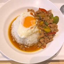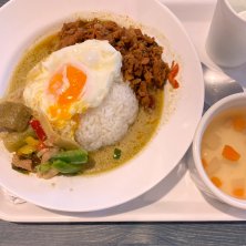 今日のお散歩ランチ🚶♂️ 久しぶりの晴海トリトン。 フードコートのタイ料理🇹🇭 ガパオとグリーンカレーのハーフ&ハーフ。 ガパオがなかなかの辛さ😅 汗をカキカキいただきました✨