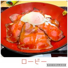 お昼は、ローストビーフ&炙り焼カルビ丼✨ ローストビーフもカルビも 美味しすぎて😋
