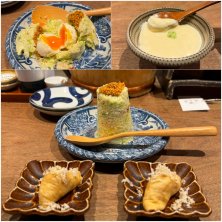 天ぷらを楽しむ✨️揚げたておいしかった 車海老 ・穴子・子持ち昆布 牛ヒレ・赤茄子 安納芋・マッシュルーム