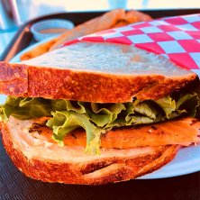 燻製したてのサーモンをサワードウブレッドでサンドウィッチ
