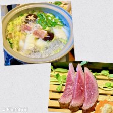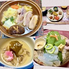 吉野山の桜を見に来ています😊 宿の夕食、メインは鴨鍋😋 美味しいお料理でお腹いっぱいです♫