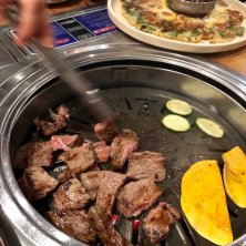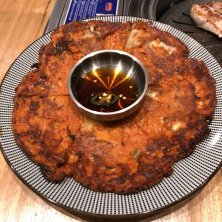 コリアン バーベキュー Wagyu めっちゃ美味😋 他には シーフードチヂミ 、チーズ🌽コーンにマッコリ いただきました