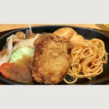 なかなかタイミングが合わなかった 金曜日の日替りランチ‼️ 【ハンバーグ+チキンステーキ+カレーコロッケ】 カレーコロッケはそのままでも、中濃ソースをかけても美味し! ハンバーグとチキンステーキは、定番の宮のたれで!