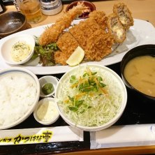 2021.11.26(金) 昼メシ 上ロースかつランチ,カキフライ@かつはな亭 今日明日とHKT48の10周年記念公演があるのですが諸事情で現地に行けないので、万全な体制で自宅で配信を実況するために会社午後休して、自宅に帰る道すがら外食。