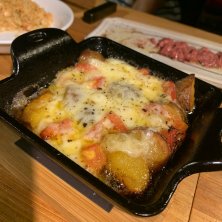 ✴︎白レバーのコンフィ ✴︎とろけるブラータチーズのカプレーゼ ✴︎イベリコ豚の瞬間スモーク ✴︎なめことエビとインカの目覚めのアヒージョ ✴︎自家製フォカッチャ レバーがとろける〜(*´∀`*)うまーい❣️ ワインもお手頃価格でおすすめです👍