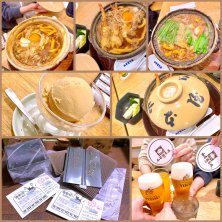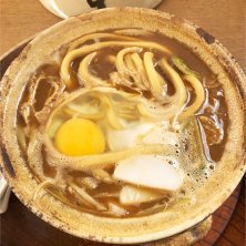 愛知県の名古屋市を中心に有る味噌煮込み饂飩の店、山本屋本店の味噌煮込みうどん。 熱した土鍋の中に長い期間醸造した赤味噌を中心にブレンドして大量の鰹節、鯵節、鶏ガラやたまり醤油などで味付けした出汁、厳選した小麦粉を自社の工房で手打ちした饂飩にネギ、蒲鉾、油揚げや鶏肉などをトッピングをしたノーマルな饂飩で、自家製漬物がセットで付いてきます。 出汁は味噌自体は濃厚ですが、色々な物がブレンドされているので味は意外とアッサリめな感じでした。でも饂飩や具と合って美味しかったです。食べられて良かったです。