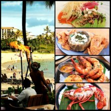 ハワイから昨日帰国しました! まだ時差ボケなので、ぼんやり投稿 コメ返、コメントおサボり中 ◎地中海風アボガドのサラダ ◎薫製カジキとマウイタマネギのディップ、芋のチップ ◎ミーナのフィッシュハウスの木炭で火を通したカウアイ島のシュリンプ、味噌バター味 ◎同じくコナロブスター ここ、前は評判イマイチだったらしいですが、★付きシェフのミーナさんの監修で立て直したそうです 確かに外れは無いお店 まあ、ルアウ風のおじさんが松明に火入れに回ったり、ハワイアンリゾートレストラン感、満載 続