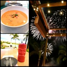 ◎食前酒のノンアルコールカクテル(モクテルと言うらしい)はお洒落なジョッキで、でもカクテルの名前は忘れました ◎コナロブスターとココナッツのビスク 載せ漏れてました ハワイらしいですよね、美味しかったです でも、これ、一人前を二人で分けてこの量なんです~! で、最終日の夜はどっかの会社がホテルでパーティー その余興で海に花火が上がりました レストランから我々も眺めさせていただきました アメリカ、やることが派手 長いハワイ旅行紀、これで打ち上げ お付き合い感謝です!