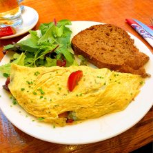 卵料理専門のレストランでゴルゴンゾーラチーズとベーコンのオムレツ☻