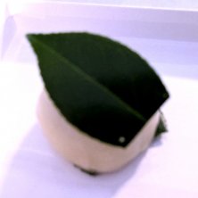 椿餅 よくさらされたこし餡を羽二重餅で包んで、更に寒天で包み、上下を椿の葉で挟んだお菓子です。羽二重餅は とっても柔らかいのだけれど、ふわっというよりねちっとした粘りのある食感でこれが独特の食感でとっても美味しいです。