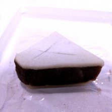 兎 大島餡を薄くて白いじょうよ生地ではさみ、うさぎの絵を彫り込んだ雅なお菓子です。黒糖味が美味しいのですが、個人的にバランス的にはじょうよ生地がもうちょっとだけ薄い方は好みかもしれません。